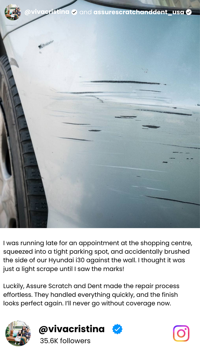 You wonβt have to claim on insurance, pay any excess, or increase your annual premiums to get your scratches and dents fixed with Assured.